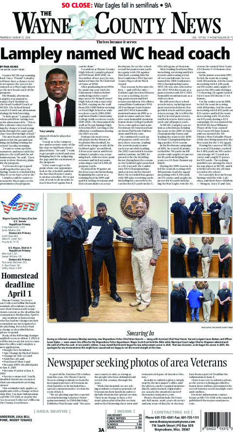 By Paul KeaneThe Wayne County NewsFormer WCHS star running back Tracy "Pound" Lampley will now...