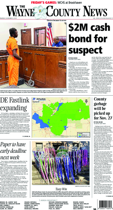 By Paul KeaneThe Wayne County NewsBond was set at $2 million cash for a suspect arrested in an...